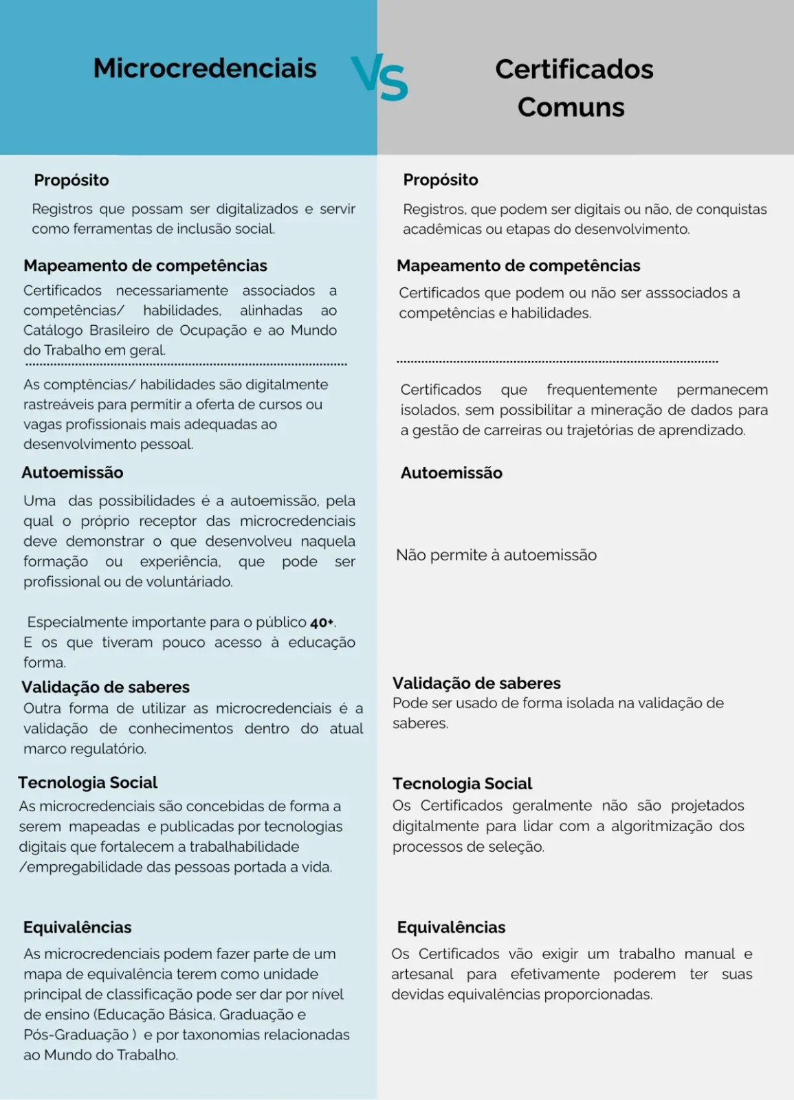 A tecnologia aplicada também se destaca. Enquanto certificados comuns não foram concebidos para enfrentar o atual cenário de algoritmização dos processos de seleção, as microcredenciais já nascem dentro desse ecossistema. Elas são rastreáveis, interoperáveis e integradas a plataformas digitais, fortalecendo a empregabilidade por toda a vida do profissional. Além disso, abrem espaço para a autoemissão, recurso inovador em que o próprio indivíduo pode demonstrar competências adquiridas em experiências práticas, muito relevante para o público 40+ e para quem não teve amplo acesso à educação formal.